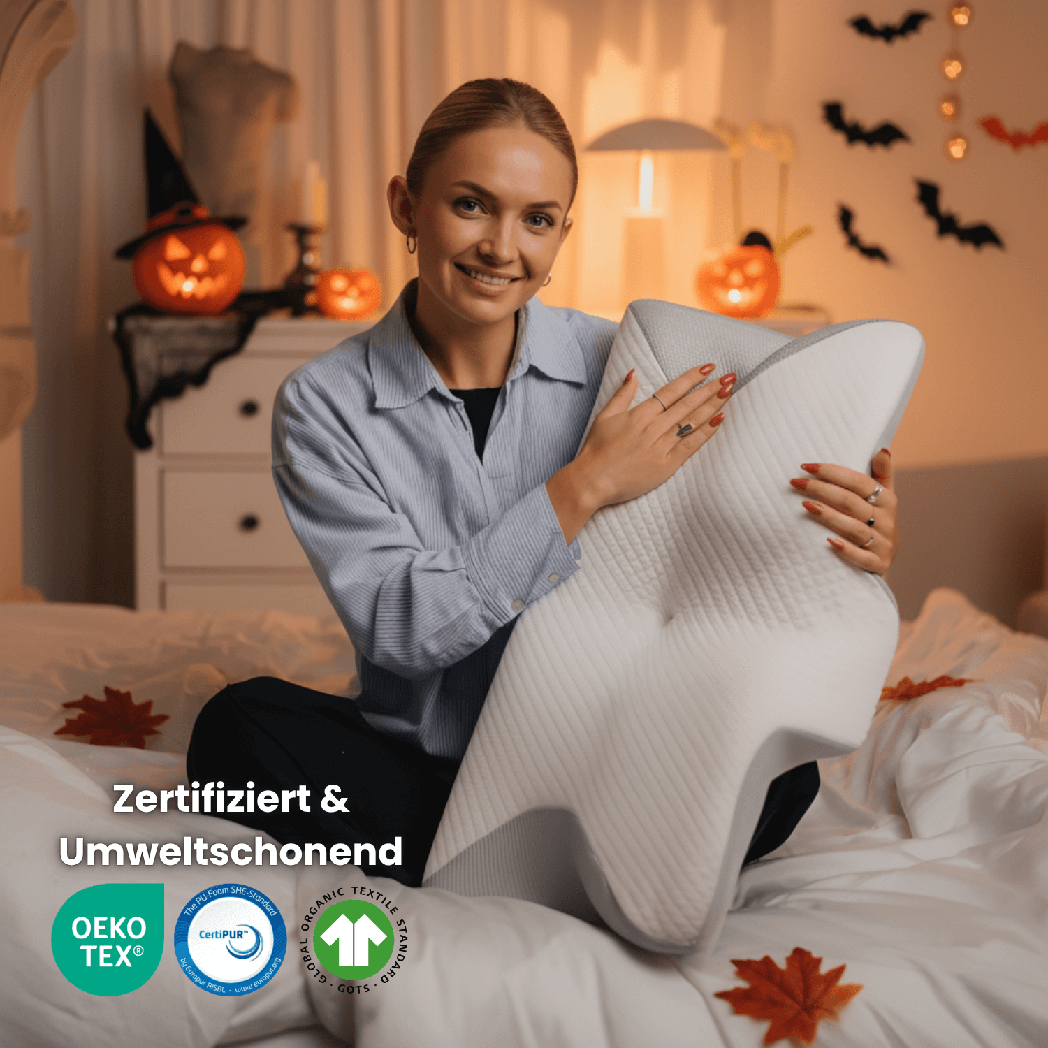 Bei der Entwicklung wurde viel Wert darauf gelegt, dass das Kissen für alle möglichen Schlafpositionen optimiert ist. Somit ist es für Seiten-, Rücken-, Bauch- und Mischschläfer geeignet – es passt sich jeder Lage an.
